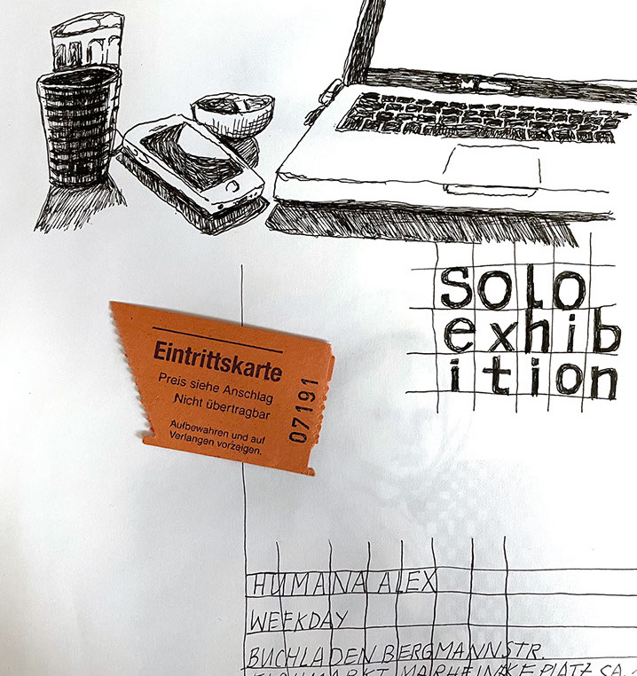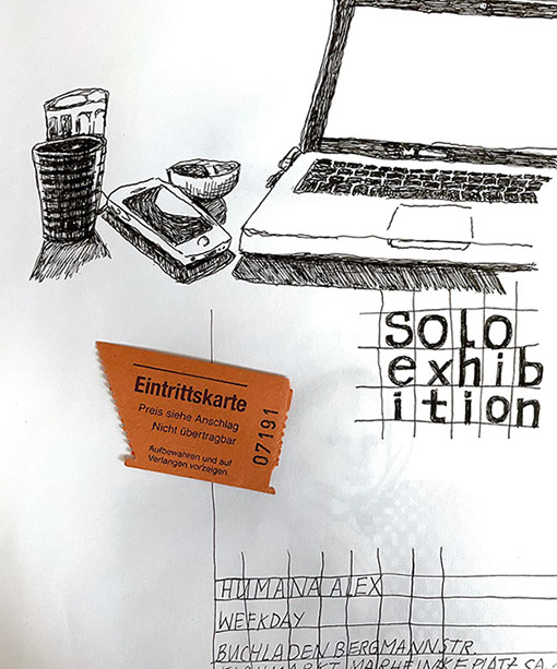 Fineliner, Acrylfarbe, Bleistift, Kugelschreiber