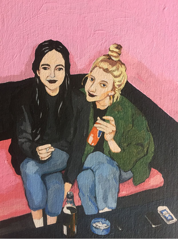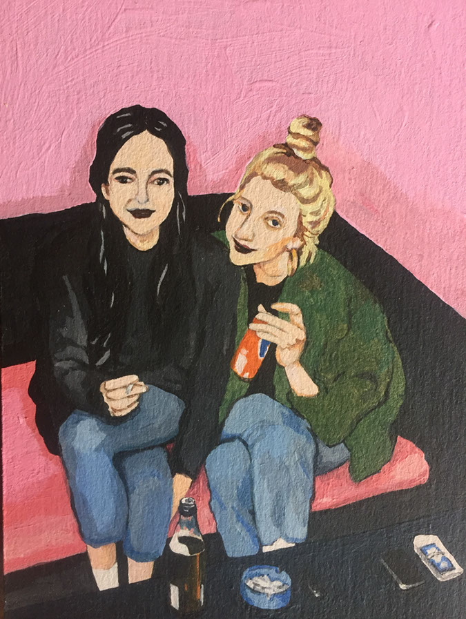 Diesen und vielen weiteren Fragen zum Thema "Freunde-bleiben" stellen sich die beiden und begeben sich auf eine gemeinsame künstlerische Entdeckungsreise. Sie gehen dabei nicht nur ihrer eigenen Freundschaft auf den Grund, sondern begegnen sich selbst dabei auf einer völlig neuen Ebene. Das Thema Freundschaft während der Selbst-Isolation zu explorieren und dennoch eng im Austausch zu bleiben, um Teil der gemeinsamen Arbeit zu sein, waren nur wenige der Hindernisse, die es zu überwinden galt. Was heißt es, sich mit der visuellen Sprache der jeweils anderen auseinander zu setzen, zwei so unterschiedliche Stile zusammenzuführen und sich darin selbst zurechtzufinden?
